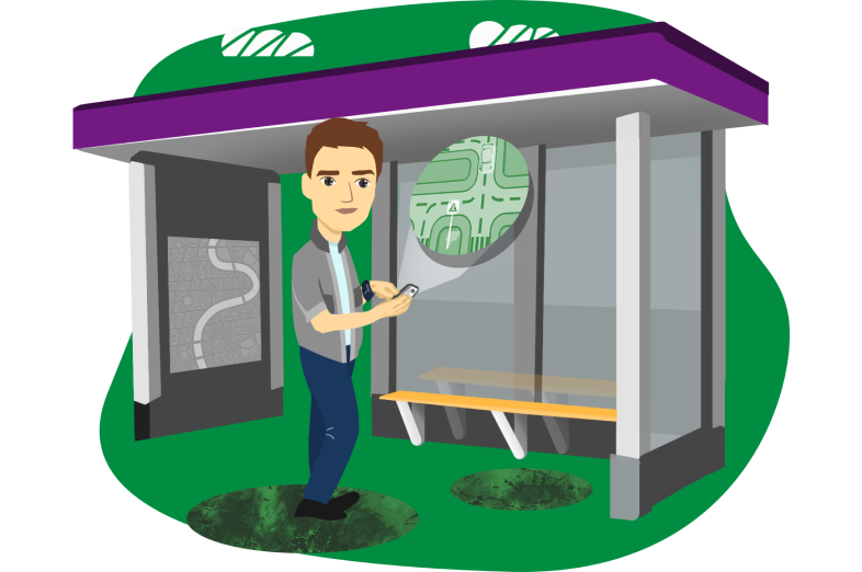 Посылка получена, и далее по плану – поездка в супермаркет. Вот только совсем не хочется долго стоять на улице в ожидании транспорта. Наш Матвей предусмотрительно установил в смартфон приложение и теперь знает, когда и на какую именно остановку приедет нужный ему автобус. Транспортные предприятия с помощью услуги «Контроль автопарка» управляют в режиме реального времени маршрутами движения транспортных средств, следят за геолокацией и длительностью стоянок. Поэтому наш герой может выходить из дома минута в минуту, успев погладить кота и захватив зонтик.