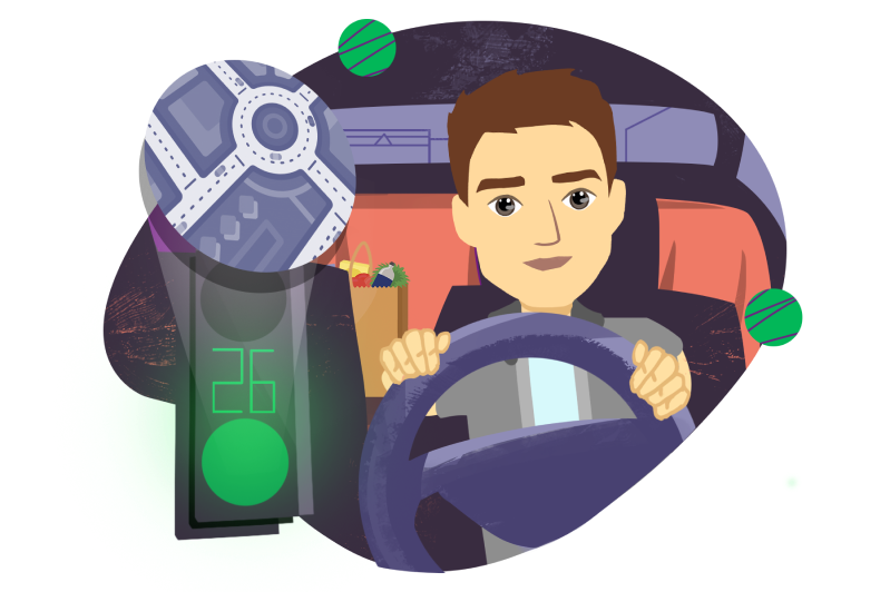 Наш герой может быть уверен, что доберётся домой быстро и без аварий, благодаря «умным светофорам» для борьбы с пробками – на загруженные направления включается более долгий зелёный свет.
