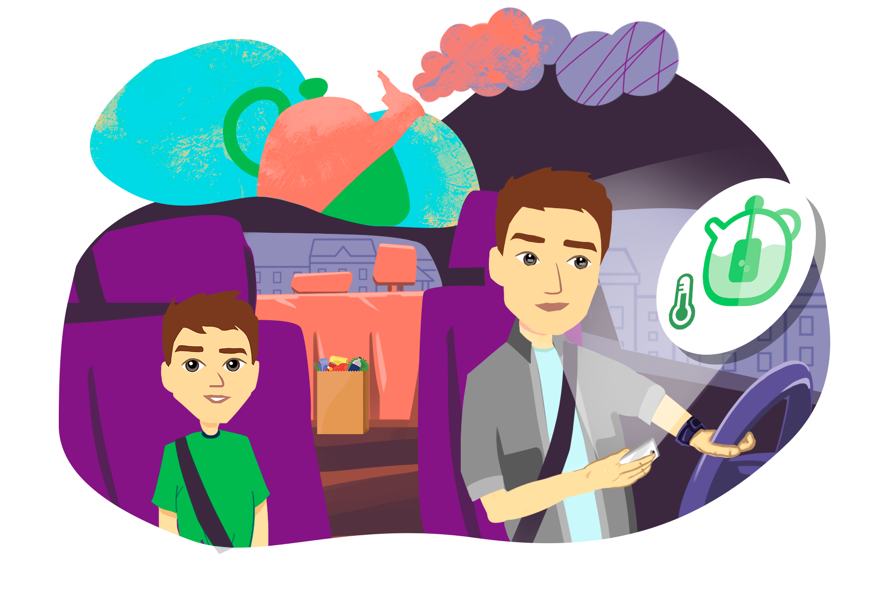 Папа с сыном встретились без приключений и едут домой, мечтая о горячем чае. Матвей предусмотрительно подключил тариф МегаФона для управления умными устройствами. Теперь ему достаточно отправить команду «умному чайнику», который по сигналу вскипятит воду, пока папа с сыном паркуют автомобиль и заходят домой.